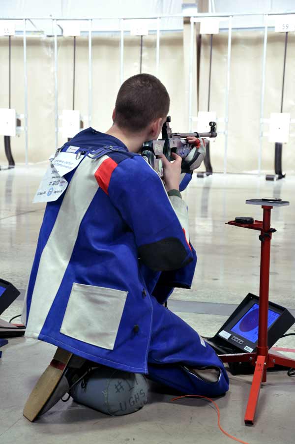 CAMP PERRY, OHIO - Steven Frazier, 17, of McDonough, Georgia, a senior shooting for Union Grove High School NJROTC, won the precision air rifle title at the 2010 Navy JROTC Service Championships here Saturday, 13 February at the Camp Perry Marksmanship Center.