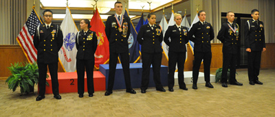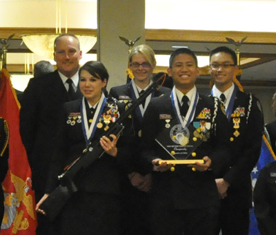 At the awards banquet, cadets who previously earned their Junior Air Rifle Distinguished Badge were presented with their badge. Four NJROTC cadets earned their Distinguished Badge during the Service Championship. |