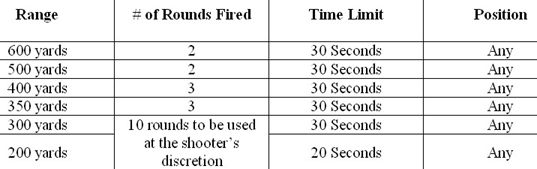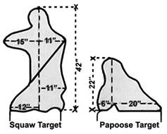 Conduct of Fire: 1. Each shooter had one (each) Squaw and Papoose Target sitting on top of the butts in front of his firing point – any firing position was allowed at all ranges (you could shoot prone at all distances if you wished). 2. The line of shooters formed just to the rear of the 600-yard line in a skirmish line. When the line was formed, it was ordered forward (“well dressed”, needless to say) to the 600 yd. firing line and halted. On command, each shooter fired 2 rounds at the target(s) within a time limit of 30 seconds. 3. Upon expiration of the 30-second time limit, the line was ordered forward to the 500-yard line. The first half of the distance was covered in “quick time (120 steps/minute), and the last half at double time (180 steps/minute). 4. Upon expiration of the 30-second time limit, the line was ordered forward to the 400-yard line. Again, the first half of the distance was covered in quick time, with the last half at the double. At 400 yards, 3 rounds were fired in 30 seconds (vice 2 at 500 and 600 yards). 5. Upon expiration of the 30-second time limit, the line was ordered forward to the 350 yard line using the quick and double time routine (which would be continued through the end of all courses of fire during the Skirmish Course). Again the shooter/competitor was required to shoot 3 shots in 30 seconds, just as at 400 yards. 6. Upon expiration of the 30-second time limit, the line was ordered to the 300-yard line. Here you had a total of 10 rounds of ammunition remaining. The individual shooter was allowed to distribute these in any way he wished between the 300 and 200-yard lines. He had another 30-second time limit at 300 yards, but this was shortened to 20 seconds at 200 yards. Old timers