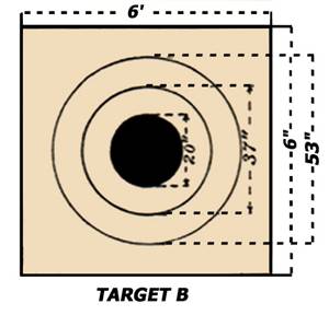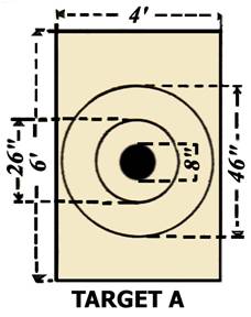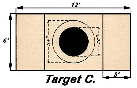 * Time limit (above) was usually considered to be "reasonable", probably about 1 minute/shot Apparently the recommendations of the National Board were ignored or changed, as no timed or rapid fire stages were specified or listed for the actual match. The National Board (NBPRP) approved the incorporation of two (2) Skirmish Runs during the 1904 Nationals, for both the National Trophy Individual Match and the National Trophy Team Match. While they are not mentioned as having been fired in 1904, the "double" skirmish run became a part of the National Trophy Matches (Team and Individual) through the 1913 shooting season. The 1904 National Trophy Matches included for the first time (at the National Trophy Matches), an "Individual National Trophy Match" as well as the "National Trophy Team Match". This addition allowed service rifle shooters an additional chance at winning a rifle leg medal during the National Matches. The National Trophy Matches were held on the Rifle Range at Ft. Riley Kansas and heavily exposed to hot August winds. The range was not overly "shooter friendly" and the shooters had to climb a 30-foot mound to fire at 1000-yards. Selection of the All-Army Rifle Team became a bit tricky for 1904, as the rules specified that in the 12-man National Trophy Team, 7 of the 12 competitors were not allowed to compete in the National Trophy Team Match the following year. While this may sound strange, the provision was actually included to increase competition within the Army. Requiring new blood on the All Army squad each year would require constant beating of the bushes to find new talent. The 5 returning individuals, usually called "old shooters," would provide the talent or anchor for the team, while the new shooters would have to be brought along by the old salts in the various branches (Infantry, Cavalry, Infantry, Artillery, etc.). This proved to be a most ingenious scheme to keep the program healthy and discourage inbreeding. The 8-inch "A" Target had been used as far back as the Matches held in 1881 in essentially the same form. This target was to be utilized in the 8" version until 1920 when a 10" bullseye was substituted.