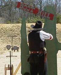 in Jersey (Or How the West Went East) The Central Jersey Rifle and Pistol Club is a big club that just keeps getting bigger, a phenomenon Club President Donald Toenshoff attributes to "good management and an ever-growing membership." The club now reports 2,116 members, 180 acres of land, a 200 meter and 300 meter rifle range, and a 25 and 50 yard pistol range, as well as trap, skeet and archery ranges. And they have cowboys. Well, not real cowboys, but 75 to 150 club members who dress up like cowboys every fourth Sunday of the month for Cowboy Action Shooting competitions. Toenshoff describes these Old West enthusiasts as "grown up kids who remember their Wyatt Earp days from the 1950s." As outlined in the handbook of the Single Action Shooting Society (SASS), in Cowboy Action Shooting, contestants compete with firearms typical of the Old West--single action revolvers, lever action rifles, and side-by-side double barreled, pre-1899 pump or lever action shotguns. Participants are also required wear western attire and "adopt a shooting alias appropriate to a character or profession of the late 19th century, or a Hollywood western star..." Attire, by the way, often includes chaps and spurs (and hoop skirts and bloomers for the women) to be worn throughout the competition. It started simply enough--five years ago, several members approached the club board of directors. As Toenshoff admits, however, these guys are "constantly thinking up new things." As shown in one of the pictures from the Central Jersey web site, the "Jackson Hole Gang" has even constructed its own saloon, complete with swinging doors. According to Toenshoff, they even have members "building a sawhorse with a saddle so people could shoot from a riding posture." The competitions are timed events running through a directed course of fire--both swinging and fixed metal targets of critters and bad guys. The group starts at 6:00 am setting up the course, with shooting starting at 9:00 often extending into the late afternoon. Cowboy Action Shooting is the fastest growing shooting sport in the United States. The Single Action Shooting Society boasts a membership of over 350 affiliated clubs, while their website received over ten million hits last year and their publication, The Cowboy Chronicle, is distributed to over 25,000 subscribers each month, with over 150 advertisers. For more information about Cowboy Action Shooting, go to the Single Action Shooting Society website at www.sassnet.com. Complete membership information as well as information about local clubs can be viewed there. |