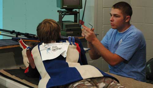 NCAA Air Rifle Champion Mike Dickinson was just one of nine highly qualified collegiate athletes who served as a camp counselor at the 2007 summer camps. Every year CMP provides athletes from the top NCAA Rifle programs to work hands-on with campers. |