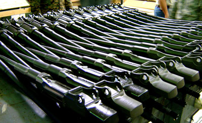 One pallet of rifles, or working stock, next makes its way to the AM (Anniston Maintenance)