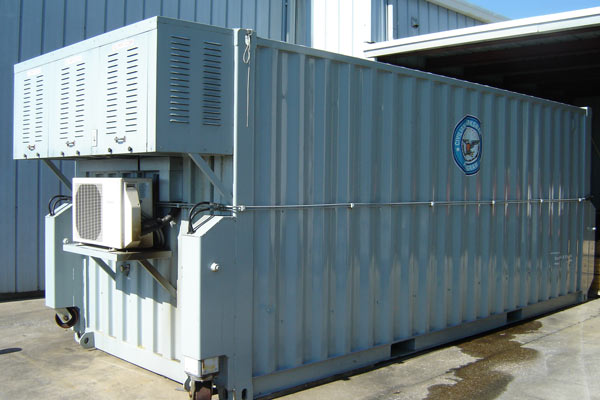 The exterior of the environmentally-controlled test-firing chamber. All lead dust particles and fragments are captured and do not enter the atmosphere.
