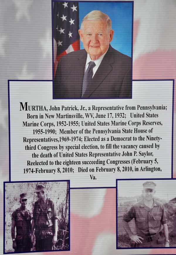 A Memoriam of Representative John Murtha was on display during the Ceremony next to the memorial bricks laid in his honor.
