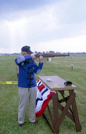 | Champion Marine Corps shooter Jim Hill prepares to fire the First Shot of the 2004 National Matches. |