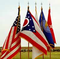 | The flags posted at the First Shot Ceremony by a Navy Sea Cadets Unit from Perrysburg, Ohio represented the USA, the State of Ohio, the Civilian Marksmanship Program, the National Rifle Association and the Deputy Adjutant General, Ohio National Guard. |