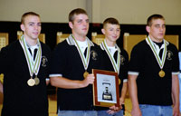 Jace Bures, a 17-year-old member of the Homestead 4-H team from Odell, Nebraska recovered from a disappointing loss in the National Guard Bureau Junior Tournament in June by taking an impressive win in this competition. At the National Guard championship, Bures took a four-point lead into the final only to have Blake Phillips of Bogalusa, Louisiana tie him by the end of the final and then beat him on a sudden-death tie-breaking shot. At Bowling Green, Bures fired daily scores of 549 and 556 to go into the final with an 11-point lead. This time he and his teammate, 16-year-old Clint Sejkora shot 87s, the best scores in the final and then finished one-two.