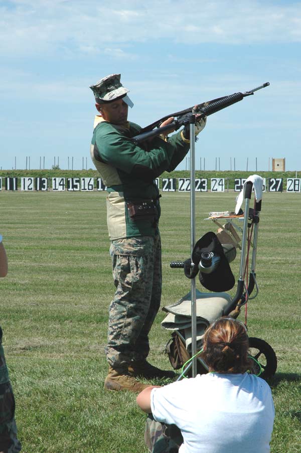 instructor Sgt. John Godwin checking the placement of his butt-plate before shooting |