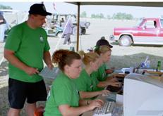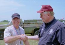 Firing in the Springfield Match begins in the prone position. Shooters fire five sighting shots and ten shots for record in 15 minutes. This is followed by a rapid-fire stage where shooters fire 10 shots in 90 seconds. They load five rounds and must drop from standing to prone, fire the five rounds, reload five additional rounds and fire them, all within the 90-second time limit. ![]() The final stage of the Springfield Match is fired in the standing position. Shooters fire ten shots standing in ten minutes. This shooter is using a M1903 Springfield. ![]() During the Springfield and Garand Matches at Camp Perry, competitor scores were entered into a computer file by CMP staff on the range. Results were available to all competitors within 20 minutes after each relay was finished. ![]() Dr. Carmen Allegra (left), Bethesda, Maryland, is an avid gun collector who attended the Small Arms Firing School and then fired his first competition ever when he participated in the 2002 Springfield Match. He used a M1903 rifle he had just received from the CMP. His 267 score earned him a silver medal and congratulations from Director of Civilian Marksmanship, Gary Anderson (right). |