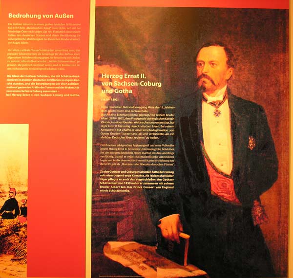 | The founding of the German Shooting Federation in 1861 by Duke Ernst II of Saxony-Coburg and Gotha is chronicled in the museum. The German federation was founded as part of a movement by German sports federations to unite in order to