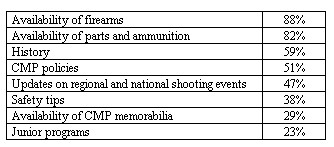 Those who visit the site now are generally male, age 50 or older (approximately 56% of the readers who completed the survey marked that they are age 50 or older, including 25% who are age 60 or older), are members of CMP-affiliated clubs (80%), and have previously purchased one or more rifles from the CMP (72%).
