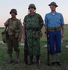 One of the highlights of the Garand Match is  the participants who come wearing military  regalia from past wars. As shown in the picture  on this page (from left to right): Gil Sneider  of Green Bay, Wisconsin in late WWII 95th  Infantry uniform; Frank Walter of Fort Wayne,  Indiana dressed as a WWII Marine paratrooper;  Master Chief Al Bulejcik of the U.S. Coast  Guard dressed as an early WWII sailor.