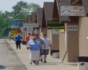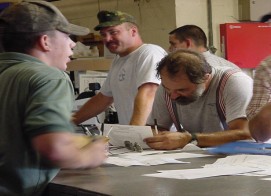 marksmen). Another popular place is Commercial Row. Shooters and spectators move from building to building, and as much time is spent in friendly annual reunions and storytelling as in bartering for equipment and supplies. As afternoon stretches into evening, the grills are fired up and a barbeque dinner is served. According to Patricia Seifert, adjacent to the Garand Registration center off Lawrence Road is the "wailing wall." This is where the scores are posted, and as stated by the 22 year volunteer of the National Matches, competitors come to gnash their teeth and bewail their fates. A moment should be taken to view the stones that mark each range, for each one is named after a recipient of the Congressional Medal of Honor. |