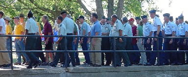 ![]() The crowd gathers outside the Camp Perry auditorium |