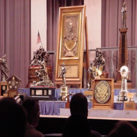 up and dressed down. It is also an impressive display of awards, with some trophies dating back a hundred years. During the ceremonies, as well, two new trophies--the John C. Garand and the "Col. Bill" Deneke awards--are dedicated (see the related stories on the Garand (click here) and Deneke (click here) trophies). The ceremonies end before 11:00 pm, yet there is still some work left to do. That includes a detail to move the trophies back into the CMP offices. Gary Anderson headed to his office one last time, still pushing forward, already discussing next year's event. |