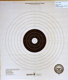 Target: Designated as "CMP B-19." Printed by Speedwell Targets, www.speedwelltargets.com. Order targets from CMP, $6.50 for 25 full-faced targets (request NLU #049) or $6.00 for 100 repair centers (request NLU #050). Course of Fire: Stage 1, 5 sighting shots (do not count in score) in 10 minutes, any position (prone, prone with rest, etc.). 50 yards. Stage 2, 10 shots in 10 minutes, prone position. 50 yards. Stage 3, 2 5-shot rapid fire series, 5 shots in 25 seconds for semi-autos, 5 shots in 35 seconds for manually-operated rifles, shooters stand and load-when time begins, they get into prone and fire their 5 shots. 50 yards. Stage 4, 10 shots in 10 minutes, sitting or kneeling position. 50 yards. Stage 5, 2 5-shot rapid fire series, 5 shots in 25 seconds for semi-autos, 5 shots in 35 seconds for manually-operated rifles, shooters stand and load-when time begins, they get into sitting or kneeling and fire 5 shots. 50 yards. Stage 6, 10 shots in 10 minutes, standing position. 25 yards. Stage 7, 2 5-shot rapid fire series, 5 shots in 25 seconds for semi-autos, 5 shots in 35 seconds for manually-operated rifles, shooters stand, load and hold rifle with butt at hip-when time begins, they raise the rifle to the standing position and fire 5 shots. 25 yards. Rules. Rules for the Rimfire Sporter Match are published in the CMP Competition Rules (see Sec. 10.0). The CMP Competition Rules can be downloaded from the CMP web site at http://www.odcmp.com/Forms/2002%20Rule%20Books.pdf or copies can be ordered from the CMP for $3.00 each. Sanctioned Club Matches. If your club wants to conduct a Rimfire Sporter Match that is sanctioned by the CMP, contact the CMP Competitions Department (competitions@odcmp.com, or call 419-635-2141, ext. 1132) to request an application form. |