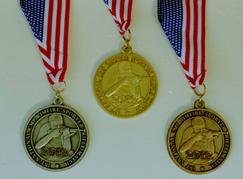 ![]() Shooters who fired over 550 (T-class) or 537 (O class) received gold achievement medals. Shooters who fired 540-549 (T-class) or 523-536 (O Class) received silver medals. Shooters who fired 525-539 (T-class) or 496-522 (O-Class) received bronze medals. For those who don't win medals, they are an incentive to practice and shoot future matches. The 2002 medals were designed especially for the inaugural year. ![]() Rifles used in the Rimfire Sporter Match truly represented the wide variety of rimfire sporter rifles available today. This shooter was firing with a lever action rifle with a tube magazine and tang receiver sight. ![]() In the second Rimfire Sporter firing position, shooters may fire in either sitting or kneeling. Most used the sitting position. Firing in this stage includes 10 shots slow fire and two 5-shot rapid-fire series. Here a shooter is working the action of his bolt-action rifle between rapid-fire shots. |